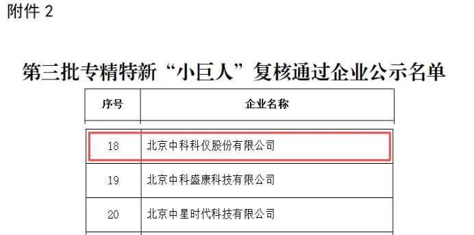 9月2日,北京市經(jīng)濟和信息化局公示了第三批國家級專精特新“小巨人”復(fù)核通過企業(yè)名單,北京中科科儀股份有限公司通過工業(yè)和信息化部及北京市經(jīng)濟和信息化局復(fù)核。