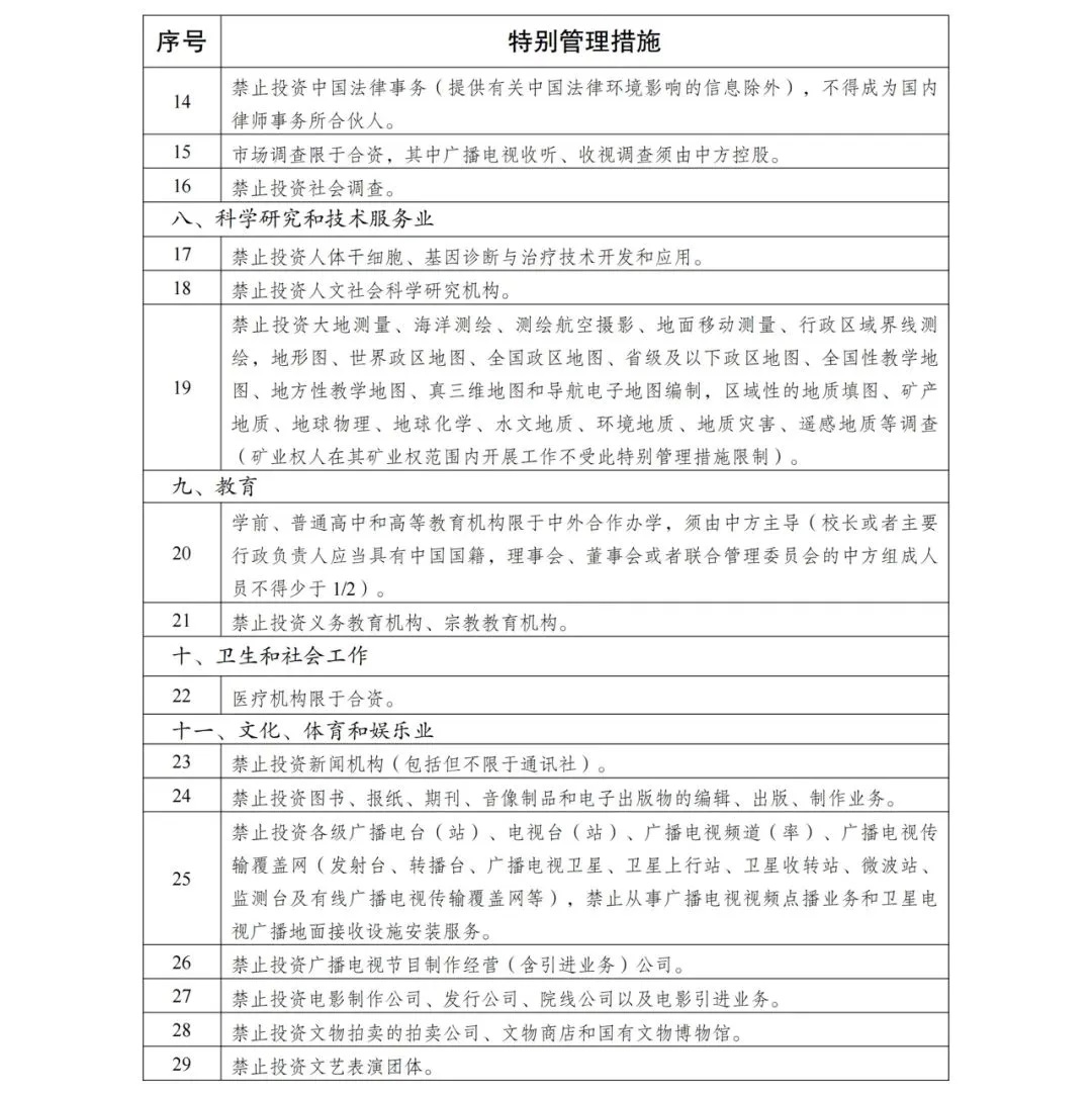 經黨中央、國務院同意,國家發展改革委、商務部于2024年9月8日發布第23號令,全文發布《外商投資準入特別管理措施(負面清單)(2024年版)》,自2024年11月1日起施行。《外商投資準入特別管理措施(負面清單)(2021年版)》同時廢止。