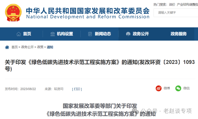 202384日國家發展改革委等10部門制定了《綠色低碳先進技術示范工程實施方案》,工程實施方案中項目方向分為“源頭減碳”、“過程降碳”、“末端固碳”,下面分別舉例。