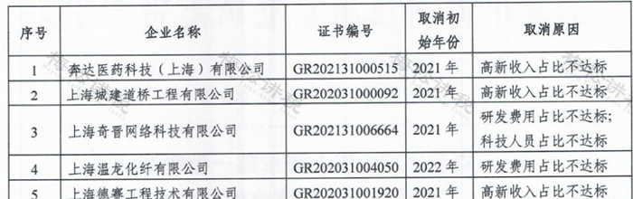 1、上海:近300家企業(yè)被取消高新資格