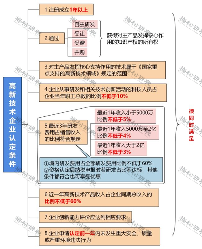 高新技術企業(yè)認定,需要同時滿足以下8個條件: