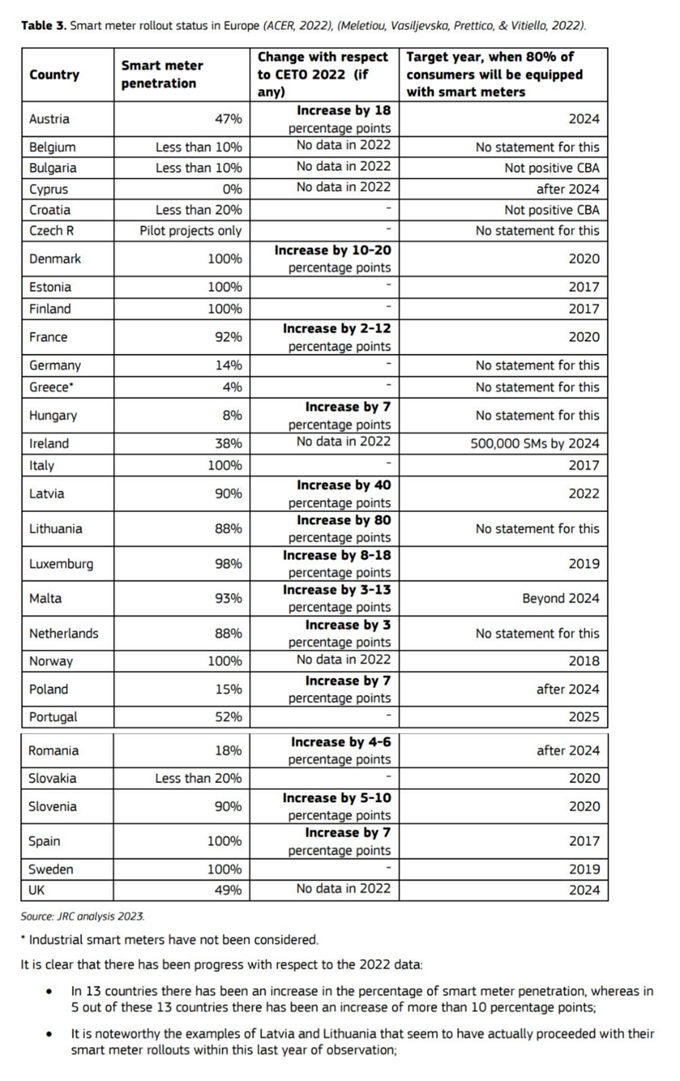 此報告中智能電表的相關數據來源主要是DSO Observatory 2022 的最新版本(2022 年秋季發布)和歐盟能源監管機構合作機構(ACER)2022 年10月發布的報告。