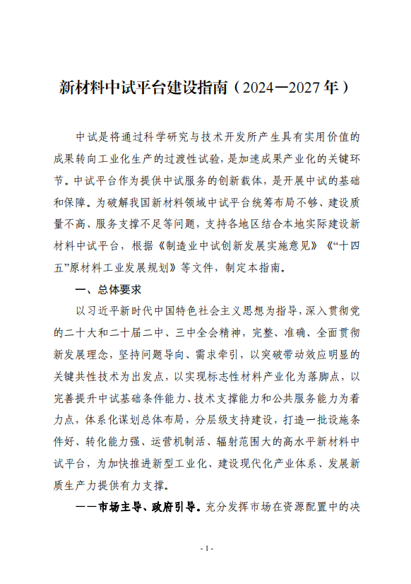 兩部委關于印發《新材料中試平臺建設指南(2024—