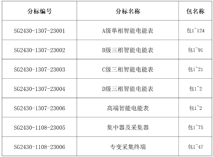 B級(jí)三相智能電能表360.41萬(wàn)只,91包;