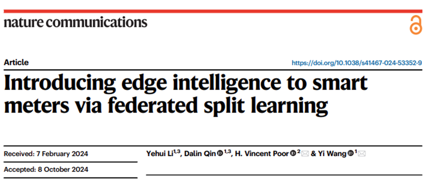 近日,國際知名學術期刊《Nature Communications》(圖1)在線刊登了香港大學王毅教授團隊與普林斯頓大學研究團隊的最新成果——通過聯邦分割學習為智能電表引入邊緣智能(Introducing Edge Intelligence to Smart Meters via Federated Split Learning)。該論文同時被編輯推薦為工程與基礎設施領域前50篇最具亮點的精選論文(Editors’ Highlights pages aim to showcase the 50 best papers recently published in an area)(圖2)。