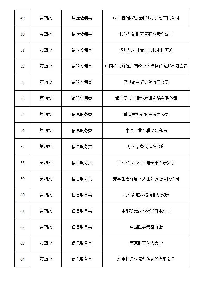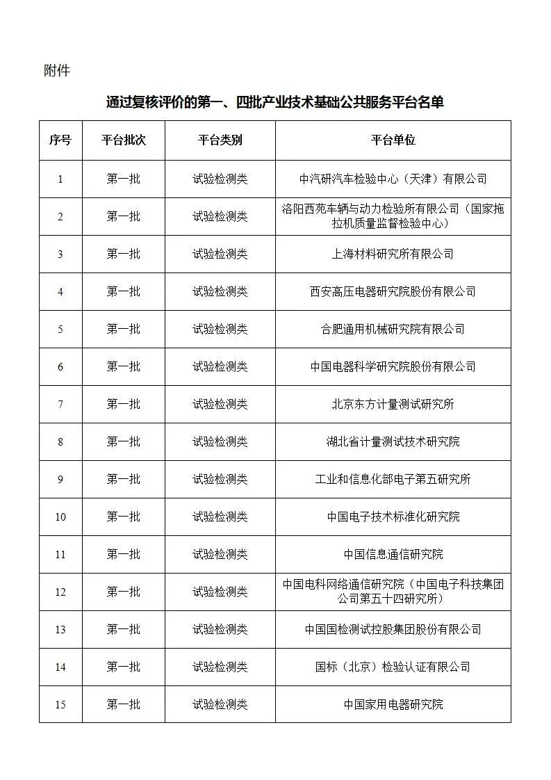 通過復核評價的第一、四批產業技術基礎公共服務平臺名