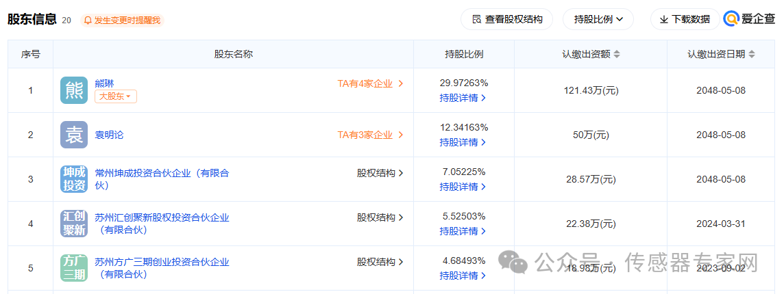 坤維科技創始人、CEO為熊琳,目前熊琳持股29.97%,為坤維科技最大股東。此外,坤維科技聯合創始人、技術負責人袁明論持股12.34%,為企業第二大股東。
