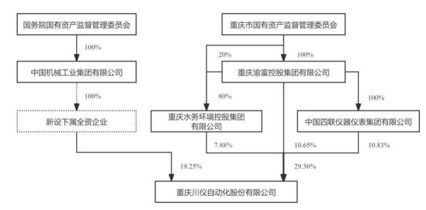 上述交易完成前,重慶市國資委合計掌控川儀股份48.61%的股份比例。上述交易完成后,重慶市國資委合計掌控川儀股份29.36%的股份比例,國機集團或其新設全資企業將持有川儀股份19.25%的股份比例。