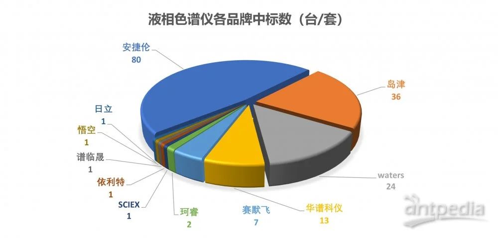 在品牌競(jìng)爭(zhēng)的激烈角逐中,安捷倫憑借強(qiáng)大的技術(shù)優(yōu)勢(shì)和卓越的品牌影響力,成為本次設(shè)備更新的最大贏家,其中標(biāo)數(shù)量接近總量的一半。島津和Waters分別以36臺(tái)(套)和24臺(tái)(套)的中標(biāo)數(shù)量,位列第二和第三。