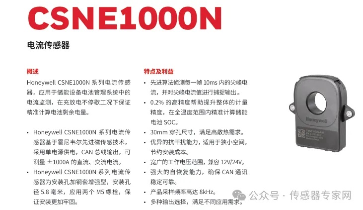霍尼韋爾推出的CSNE 1000系列電流傳感器即在中國南京研發(fā)完成和生產(chǎn),CSNE 1000系列電流傳感器是一款針對儲能等應用場景研發(fā)的高性能傳感器產(chǎn)品,已在全球多家儲能巨頭公司產(chǎn)品中應用。