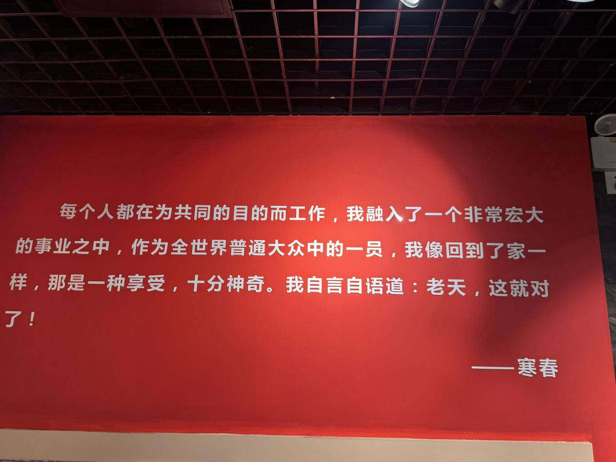 參觀首站是陽早、寒春生平事跡展廳。136張珍貴歷史圖片和60余件實物,立體呈現了夫婦二人樸實而偉大的一生。在講解員生動的敘述和豐富的圖文、文獻及實物資料引導下,大家深入了解了陽早、寒春感人至深的事跡及其為中國農牧業發展所建立的卓越功勛。展覽深刻詮釋了他們純粹的革命信仰、艱苦樸素的優良作風和忘我奉獻的崇高精神。展廳內鐫刻的寒春語錄,字字鏗鏘,振奮人心: