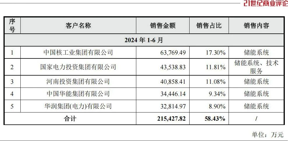 招股書顯示,2024年1至6月,海博思創(chuàng)的前五大客戶,分別為中國核工業(yè)集團(tuán)、國家電力投資集團(tuán)、河南投資、中國華能和華潤電力。