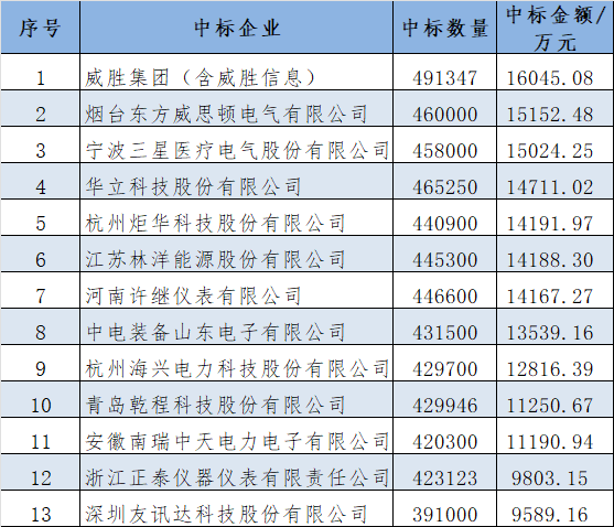 本批次電能表+終端匯總中標數(shù)據(jù)