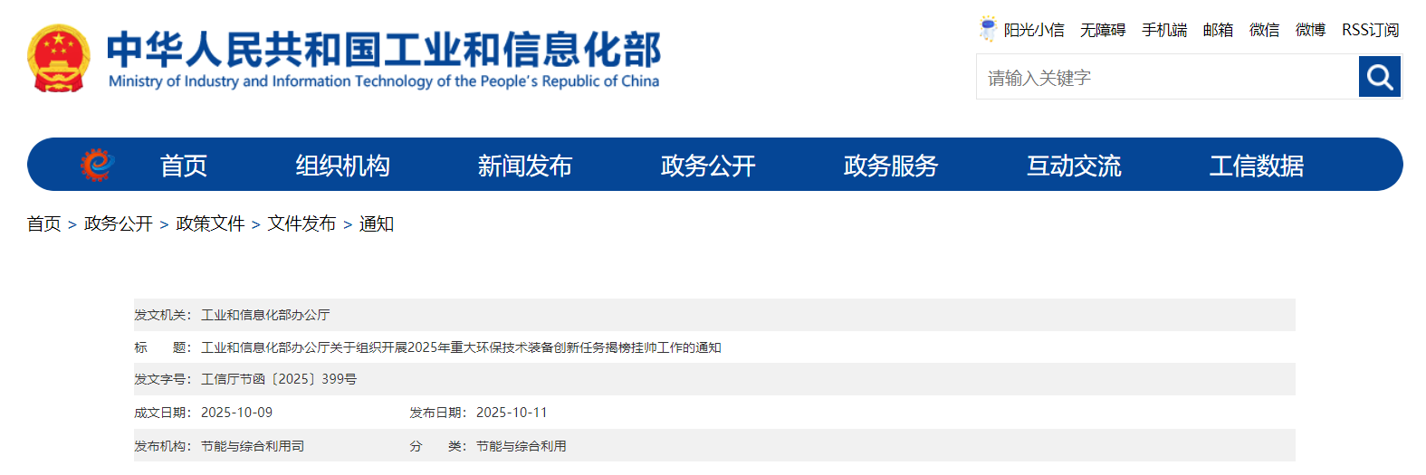 關于組織開展2025年重大環保技術裝備創新任務揭榜掛帥工作的通知