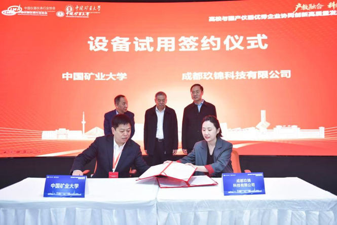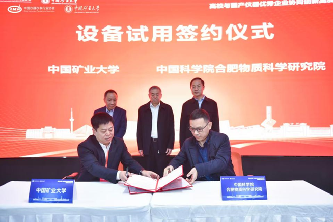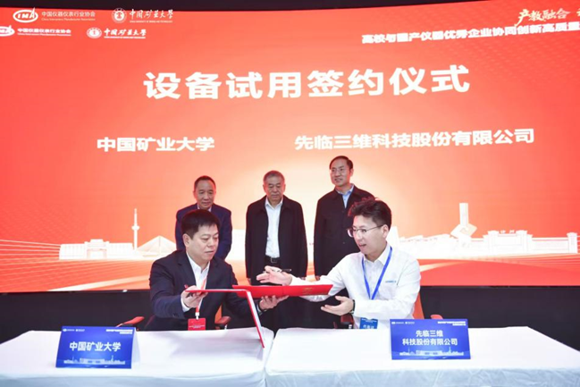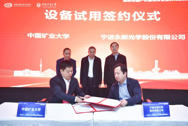 此次活動促成了寧波永新光學股份有限公司,先臨三維科技股份有限公司、成都玖錦科技有限公司、中國科學院合肥物資科學研究院4家企業(yè)與礦大簽訂設(shè)備試用協(xié)議。工信部裝備工業(yè)一司原一級巡視員苗長興、協(xié)會秘書長李躍光、礦大副書記李江濤共同見簽,礦大實驗室與設(shè)備管理處處長吳祝武代表礦大與企業(yè)簽約,通過此次設(shè)備試用協(xié)議的簽訂及合作平臺的搭建,開啟了校企儀器應用與技術(shù)合作的嶄新篇章,為國產(chǎn)儀器的市場化應用注入了新的動力。