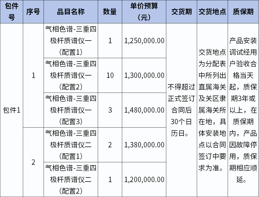 2265萬元,海關總署17臺套氣相色譜-三重四極桿