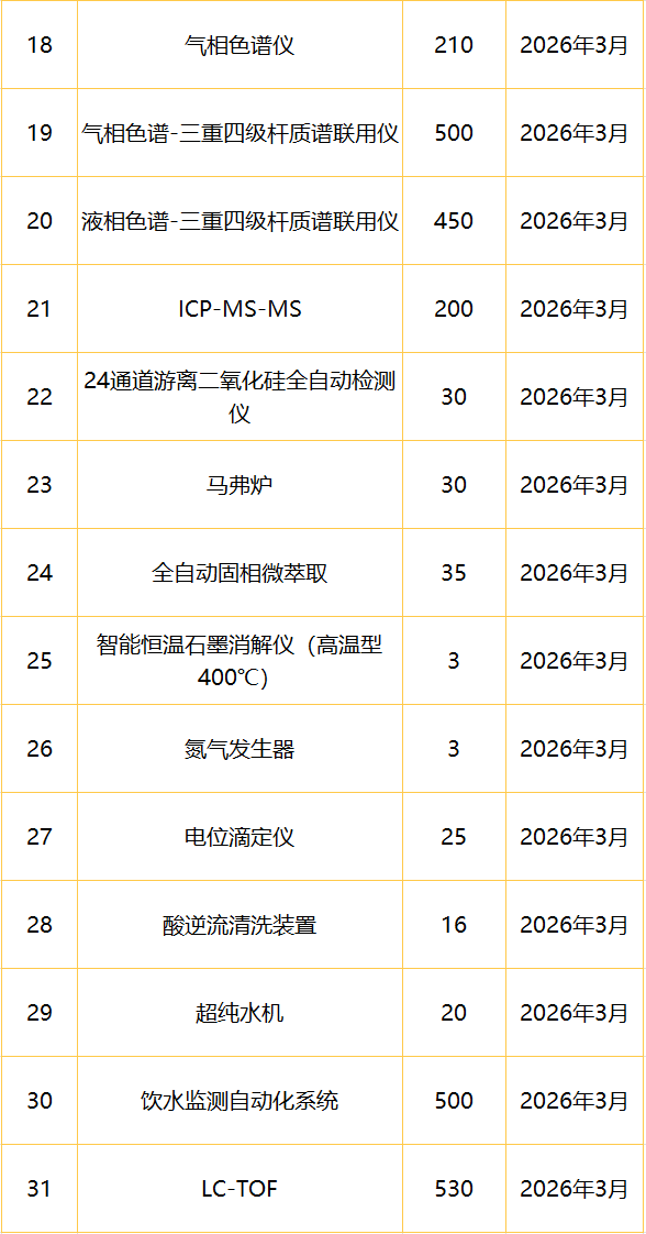 “十五五“儀器設(shè)備項目2026年2月至12月政府采購意向
