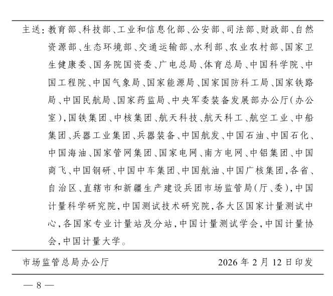 近日,市場監(jiān)管總局印發(fā)《2026年全國計量工作要點》,明確2026年將緊緊圍繞“講政治、強監(jiān)管、促發(fā)展、保安全”的工作總思路,緊扣“一個大市場、兩個綱要、三個監(jiān)管、四個安全”工作著力點,大力實施計量強基工程,科學謀劃“十五五”計量工作,加強基礎(chǔ)建設(shè),強化監(jiān)管,創(chuàng)新服務,深化國際合作,加快構(gòu)建國家現(xiàn)代先進測量體系,為基本實現(xiàn)社會主義現(xiàn)代化筑牢計量基礎(chǔ)。