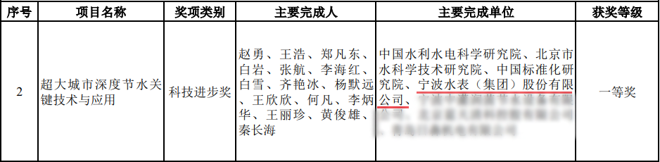 近日,2025年度大禹水利科學技術獎評選結果正式揭曉,由寧波水表(集團)股份有限公司(以下簡稱“寧水集團”或“公司”)作為主要完成單位之一,攜手中國水利水電科學研究院、北京市水科學技術研究院、中國標準化研究院等7家單位共同完成的“超大城市深度節水關鍵技術與應用”項目成果,憑借其卓越的創新性與顯著的應用成效,榮獲科技進步獎一等獎。